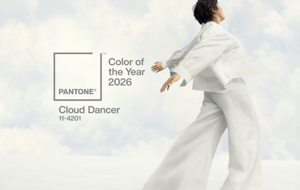 Si l’expérience utilisateur semble connaître quelques bouleversements ces derniers temps et évoluer à vitesse grand V, les tendances graphiques semblent en revanche perdurer et s’adapter à ce grand besoin de spontanéité et de personnalité abordé ci-dessus. Nouvelle année, nouvelle nuance Pantone mise en avant, annonçant peut-être la couleur de 2026 : la marque Pantone met à l’honneur une nuance de gris chaud très clair, “Pantone 11-4201 Cloud Dancer”. Une couleur qui fait appel à la légèreté, à la douceur et au rêve, qui donne envie de s’emmitoufler dans les nuages.